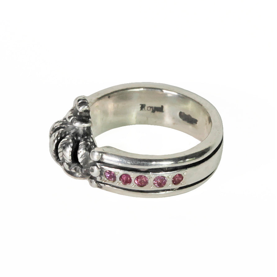 Triple band with crown ring, available with yellow or pink sapphires.