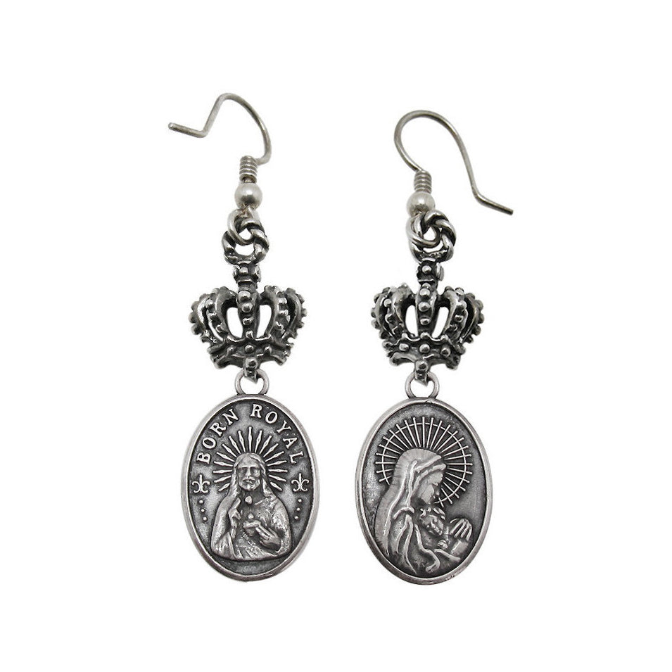 Pair of Madonna with crowns attaching the hooks to the coins.