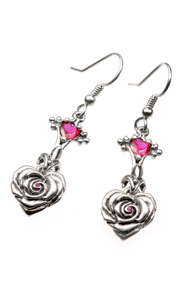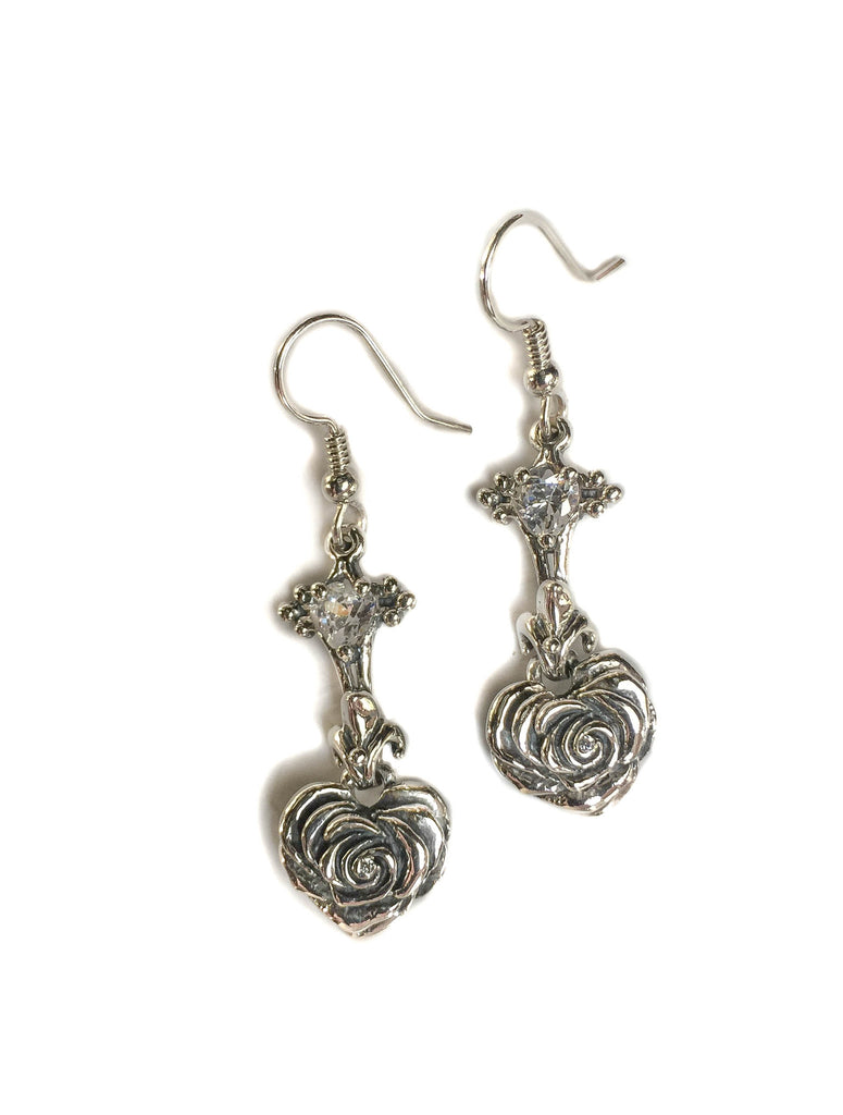 Small heart rose with Fleur de Lis drop and two cubic zirconia.