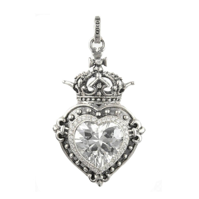 Large demi god heart set with a large cubic zirconia stone surrounded by clear pavé cubic zirconia.