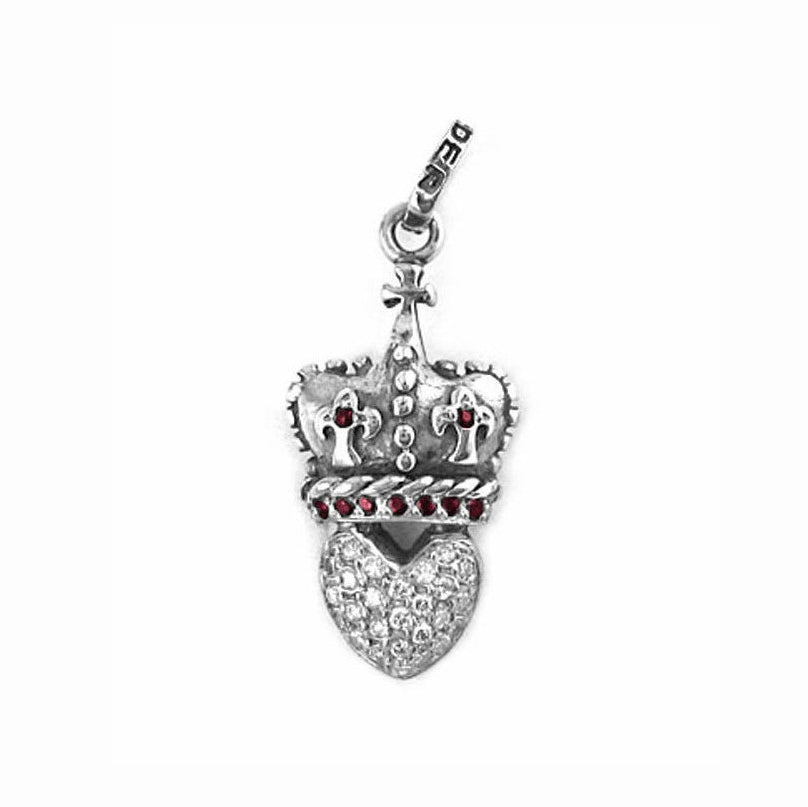 Sacred heart with crown with set with pavé white diamonds and rubies.