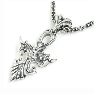 Trapeze Cross Pendant with set with a small cubic zirconia.