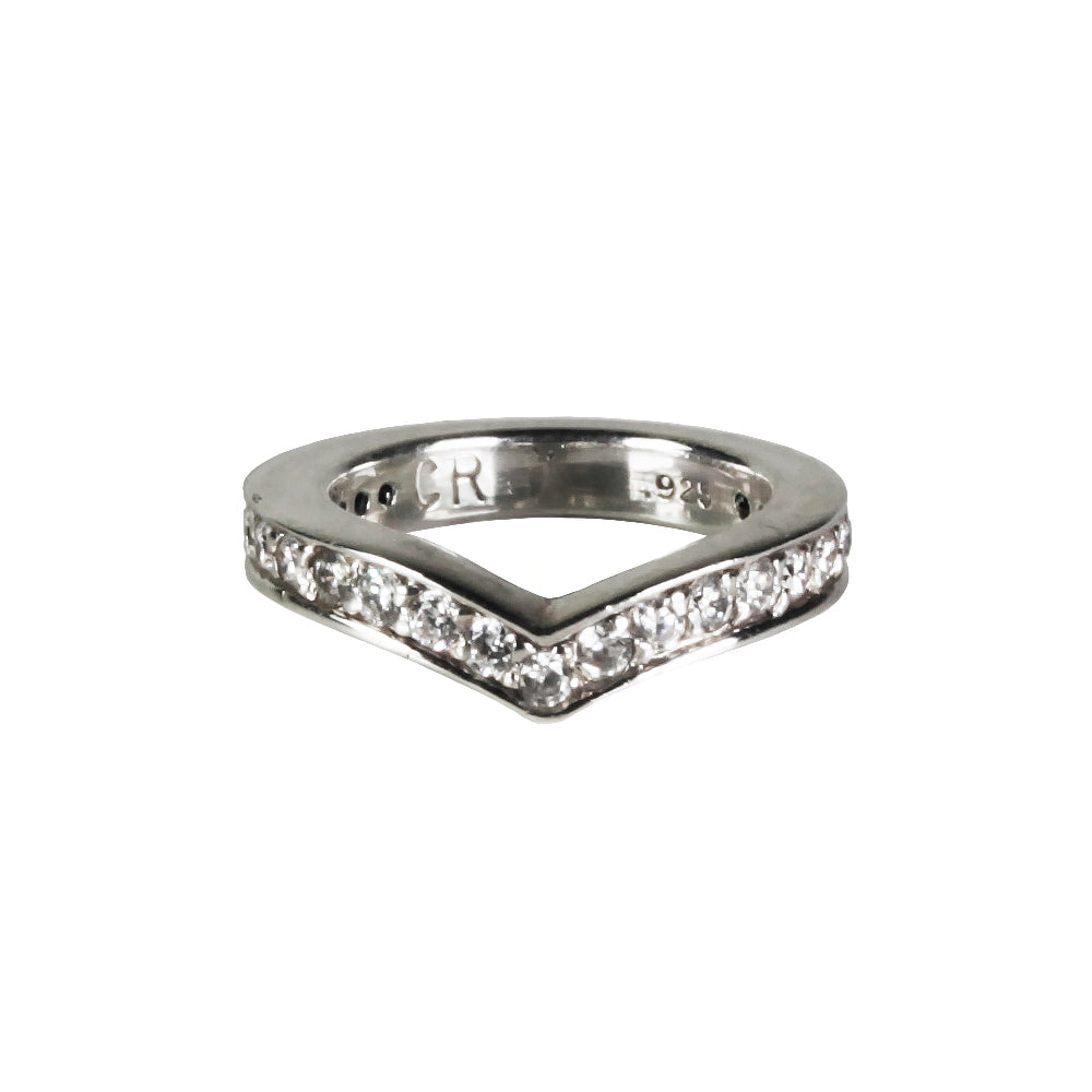 Beautiful tiara- style band made to wear alone or stacked underneath the Queen Tiara Ring. Set with pavé cubic zirconia stones.