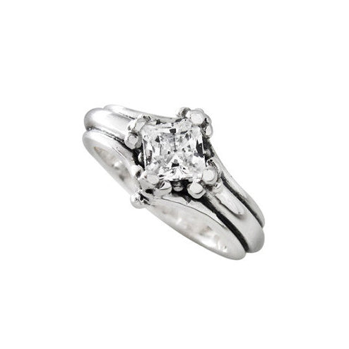 TRIPLE BAND SOLITAIRE RING w/ CZ