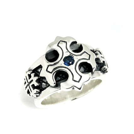 Triple cross with a single cubic zirconia set in the center cross, offered in a variety of colors.