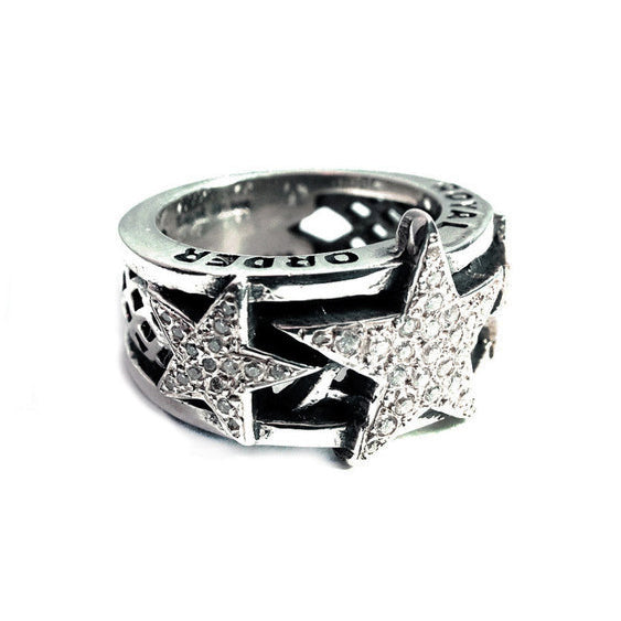 TRIPLE STAR MESH RING w/ PAVÉ DIAMONDS